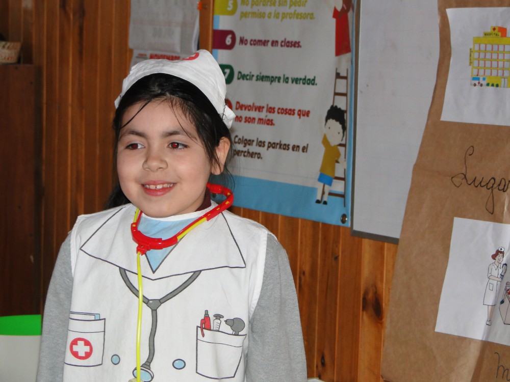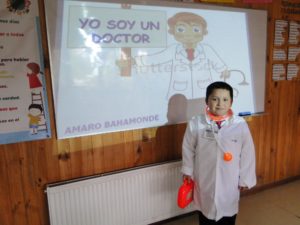 El objetivo de esta actividad, según nos explicó la tía Karin Soto, profesora a cargo de este curso, era que los niños se proyecten sobre que profesión le gustaría ejercer cuando crezcan. “Cada niño se presentaba como yo soy… algunos llevaron los elementos de cada profesión y tenían que responder ciertas preguntas, como: ¿Cuántos años estudió?, ¿Por qué es importante la profesión? y ¿qué pasaría si no existiera?”, dijo la tía, destacando que las profesiones que más se repitieron fueron médicos, veterinarios y policías.