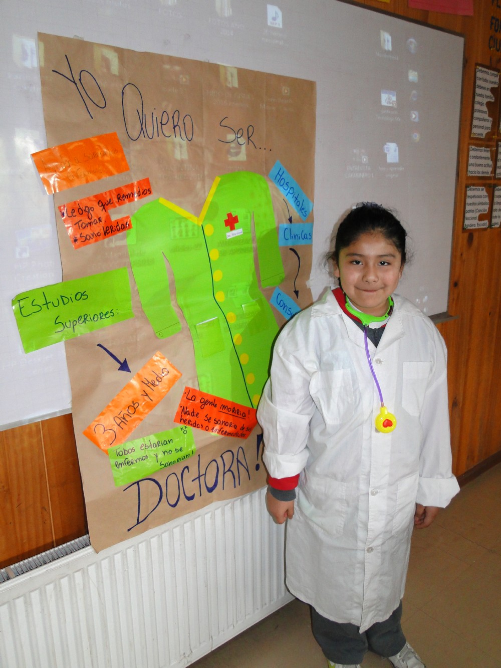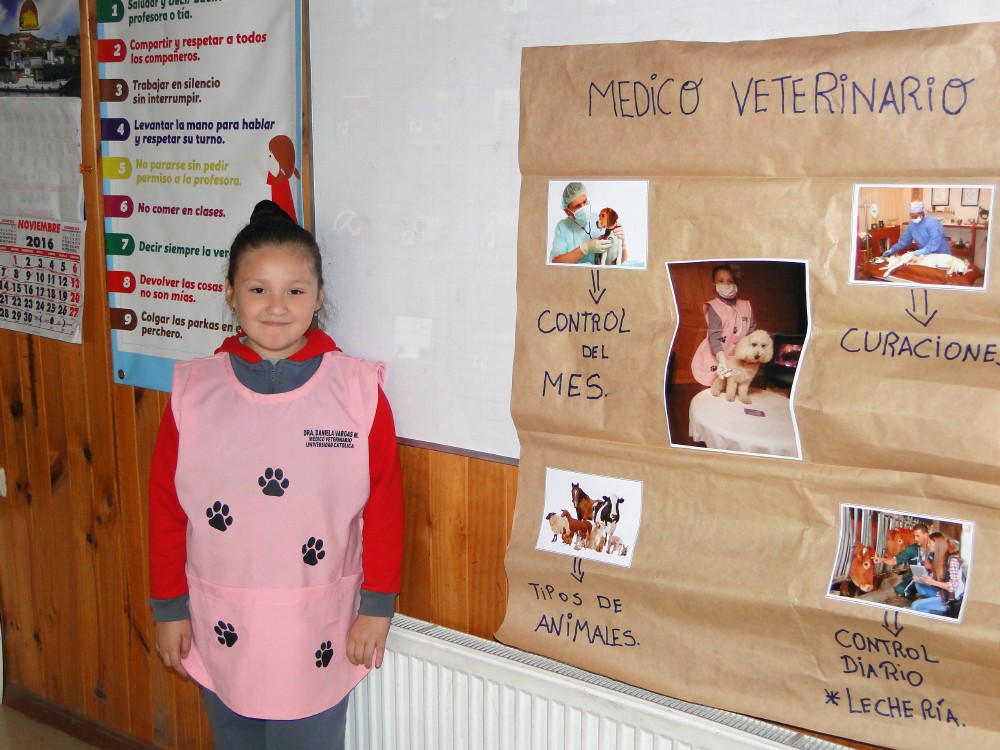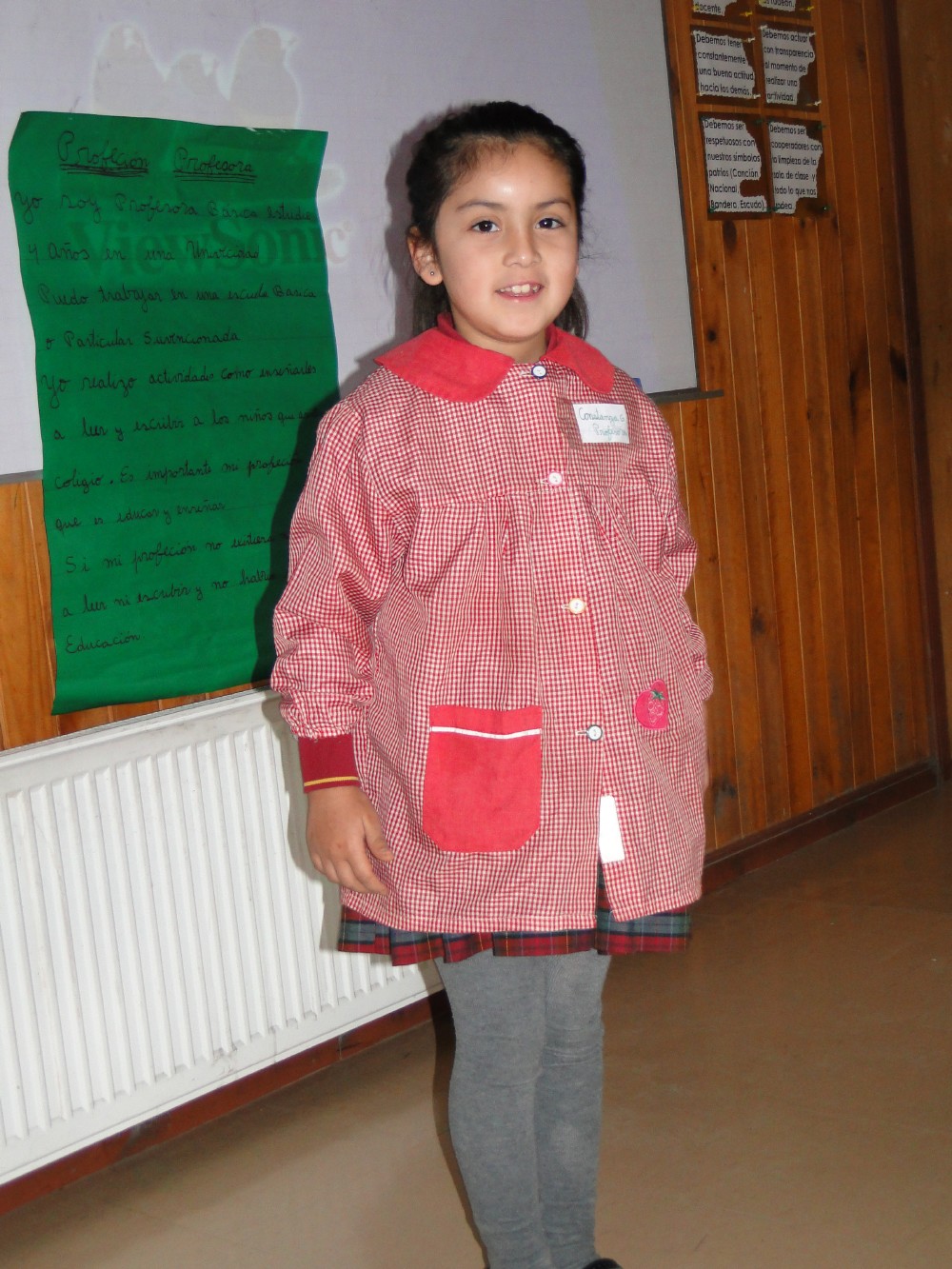 Como parte de un proyecto para la asignatura de Historia, los alumnos de primero básico de la escuela Nido de Cisnes representaron una profesión u oficio. El trabajo consistía además en realizar una disertación  sobre lo que ellos querían ser cuando grandes, explicar por qué elegían esa profesión u oficio y describir en qué consiste cada trabajo.