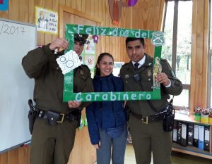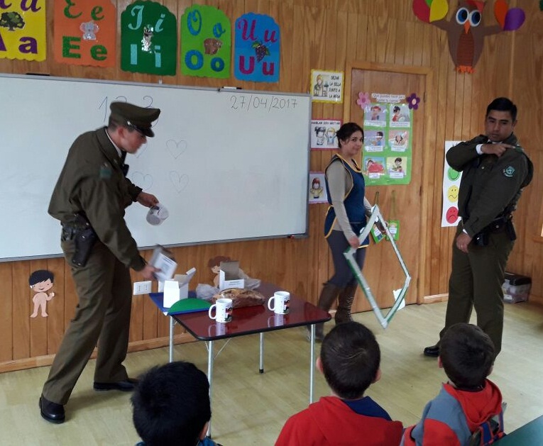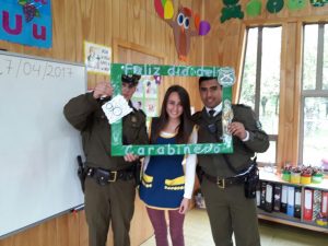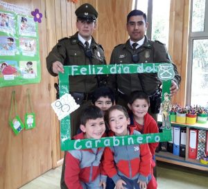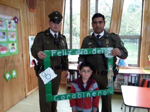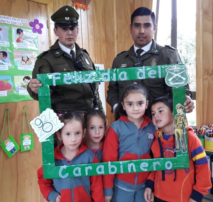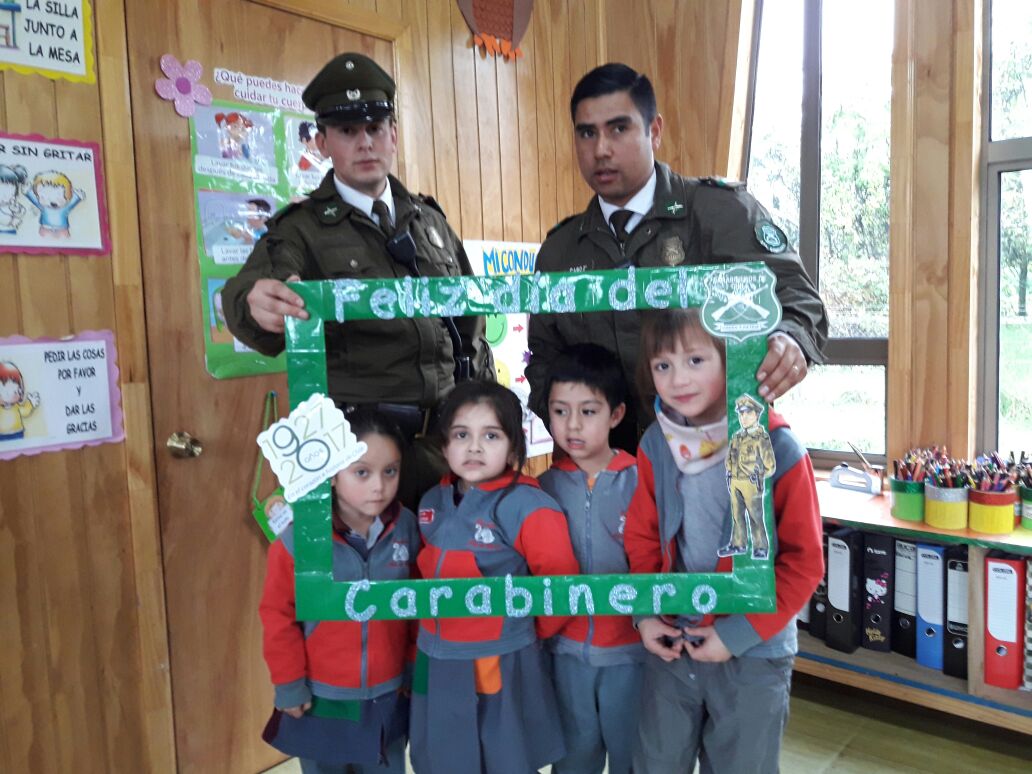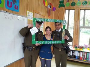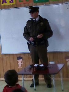 El tío Claudio Muñoz, director de la escuela fue quien gestionó la visita de los carabineros y el objetivo de la actividad fue que los alumnos se familiarizaran con esta institución, nos explicó la tía Constanza Prado, encargada del curso. Los carabineros además hicieron una pequeña charla en la que explicaron a los niños sus funciones y actividades.