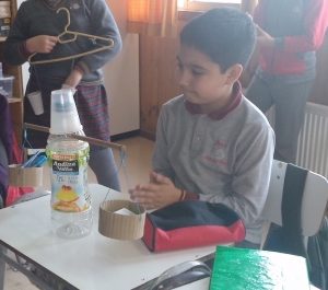 Igualmente, para aprender la medición de la masa de la materia, experimentaron creando balanzas rústicas, utilizando material reciclado como perchas, vasos desechables y botellas plásticas. Con sus balanzas masaron objetos del entorno, información que iban detallando en sus cuadernos, para finalmente exponerlos. “Lo importante es que entendieron estos contenidos de manera concreta, trabajando grupalmente y experimentando los resultados”, expresó la profesora.
