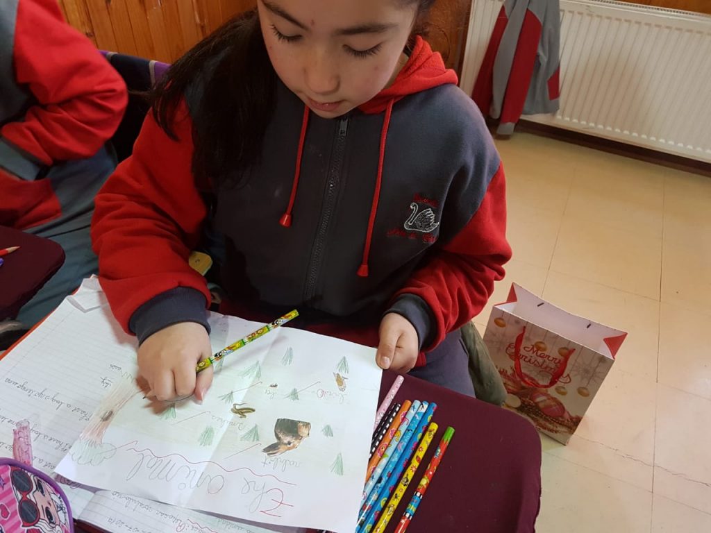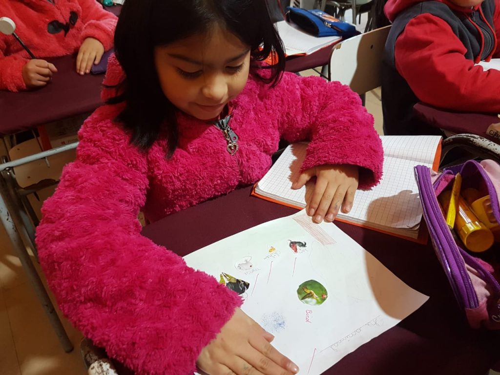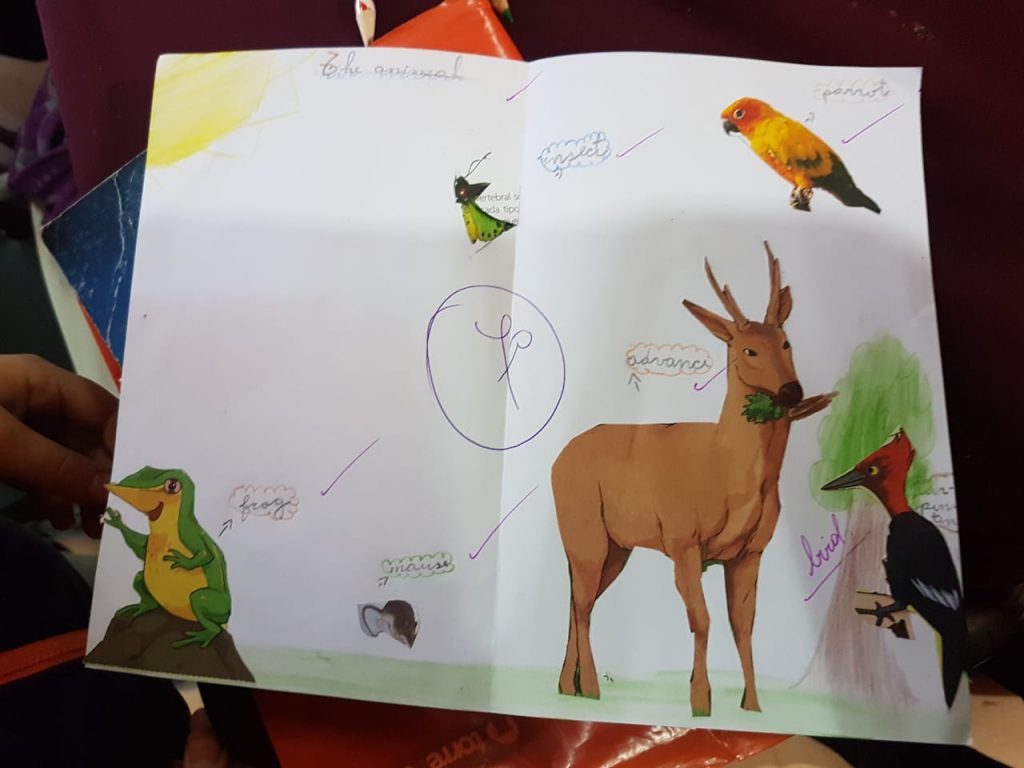 Para fomentar los aprendizajes de los animales en el idioma Inglés, la profesora Sindy Castro realizó un entretenido proyecto en 3° básico. Se trató de un muestrario de animales en inglés, con recortes y dibujos de animales como vacas, perros, gatos, cerdos, pájaros, etc. Los alumnos tuvieron una muy buena reacción frente a esta tarea, ya que trabajaron con materiales concretos para elaborar sus presentaciones, según nos informó la tía Sindy. Esto se realizó en la segunda unidad de esta asignatura.