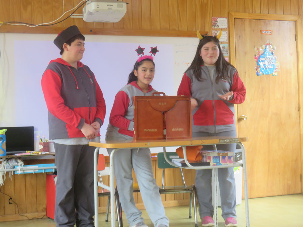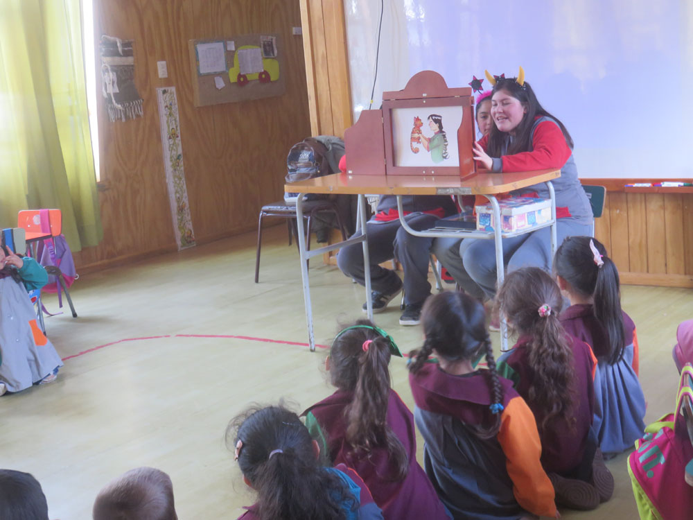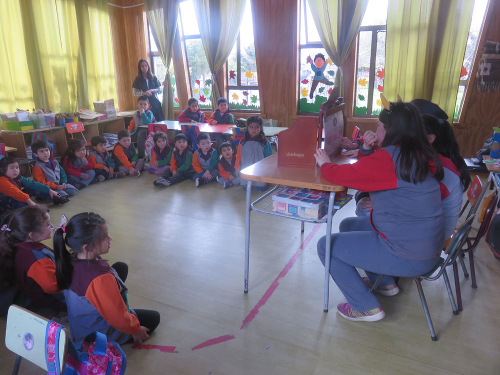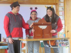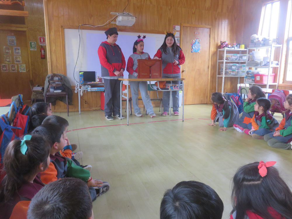Un grupo de integrantes del Taller de Periodismo de la escuela realizaron una entretenida actividad de Fomento Lector, por medio del Teatro de Papel Kamishibai para los niños de pre-kinder. Con antenas y sombreros para alegrar a los pequeñitos, los reporteros escolares Sebastián, Yanaira y Monserrat, contaron los cuentos “El gato sol” y Bernardo y Canelo”. La tía Viviana, educadora a cargo del curso indicó que la actividad estuvo muy hermosa y que espera que los alumnos sigan empapándose de estas historias entretenidas, mientras los niños dijeron que les gustó mucho y dieron nuevas ideas como cuentos con títeres, obras de teatro y disfraces, para disfrutar y sacarlos de la rutina.