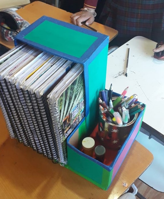 Elaborar proyectos tecnológicos fue el desafío que presentó el profesor Magdiel Rute a los estudiantes del 8° básico de la escuela. La actividad consistía en crear y desarrollar un objeto tecnológico que pudiese atender alguna necesidad que lo alumnos detectaran como grupo, tanto en el entorno de la escuela, como en el de la casa. Los materiales que utilizaron principalmente fueron reciclados para que los proyectos se concentren en ser reutilizables y tengan mayor vigencia y algunas de las creaciones que desarrollaron fueron: organizador de útiles escolares, un botiquín, compostera y un cuadro sustentable.