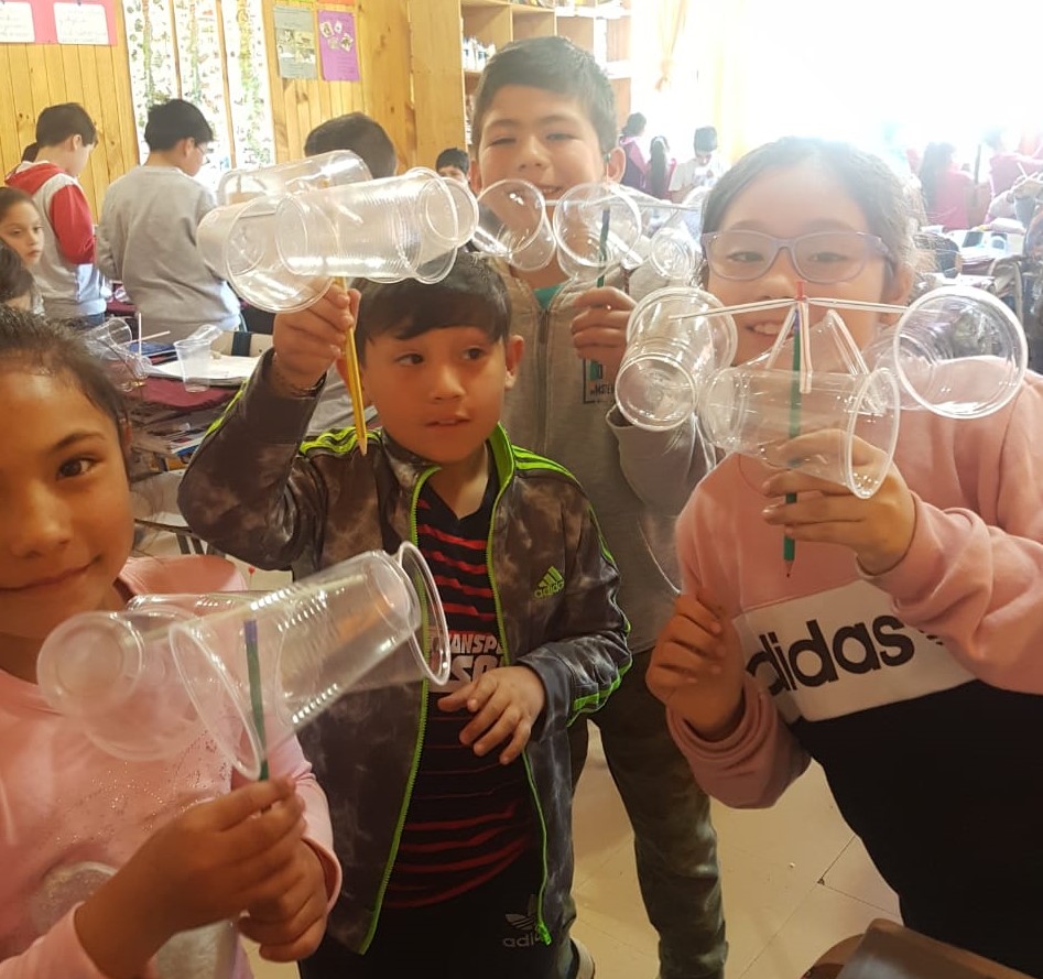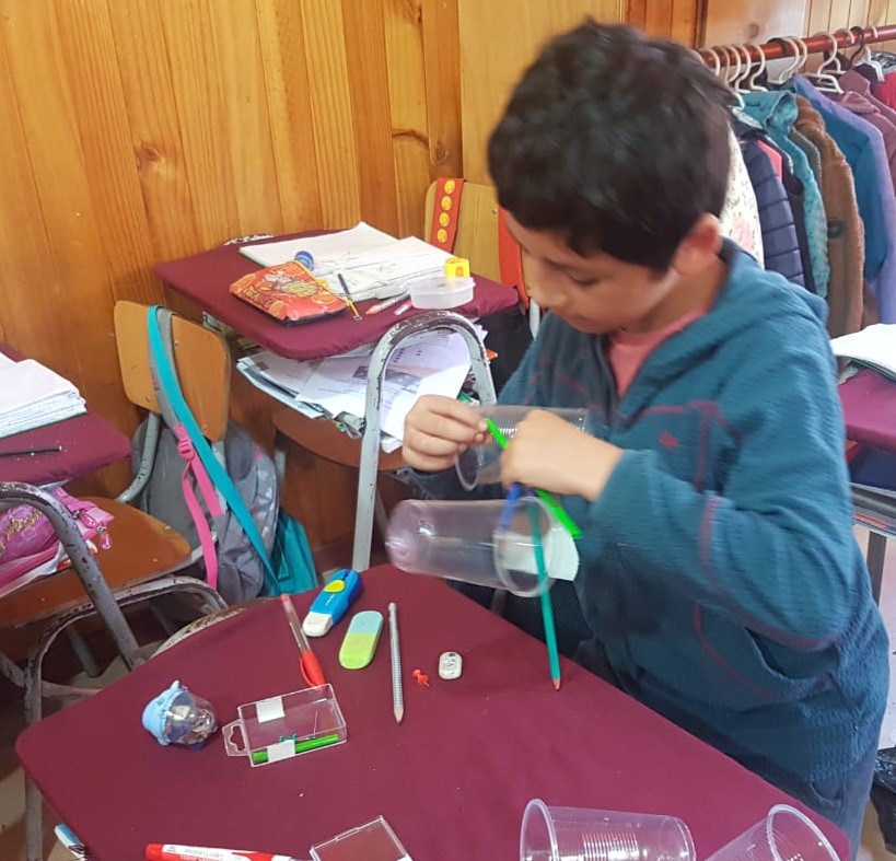 En la Escuela Nido de Cisnes, la tía Sindy Castro, realizó una actividad en el 2° año básico, que consistió en que los niños construyeran una veleta con materiales de reciclaje.