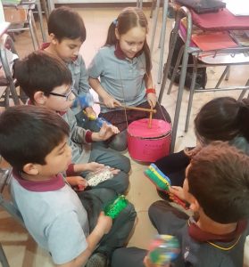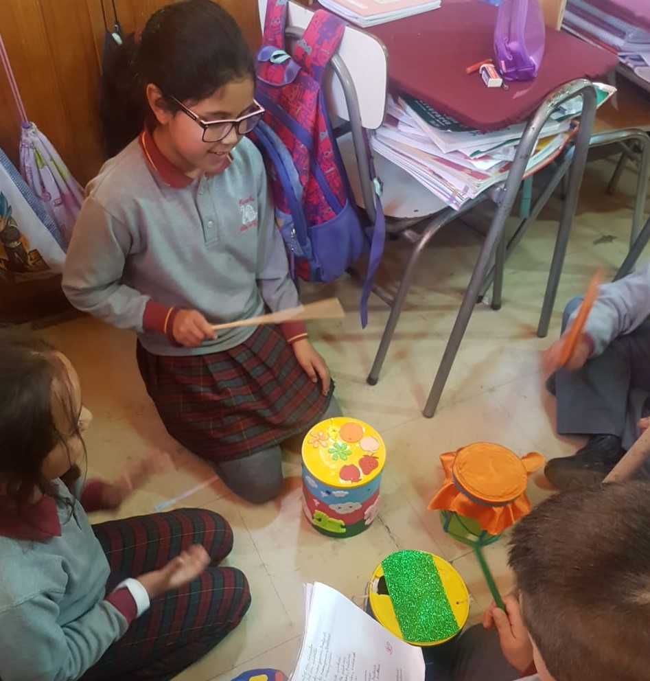 Alumnos de 2do básico realizaron una hermosa actividad que consistió en fabricar instrumentos musicales. Este trabajo estuvo a cargo de la profesora Sindy Castro, y además de la creación de los instrumentos, que se hizo utilizando materiales de desecho, tarros de café, retazos de género, pedazos de papel y botellas plásticas, se hizo la presentación de una canción. Estos instrumentos también se pudieron ocupar en música, en la unidad rítmica. “La actitud de los niños frente al trabajo fue buena y les gustó porque los instrumentos se ocuparon en clases posteriores”, señaló la profesora.