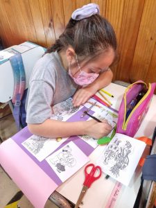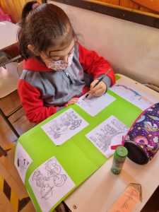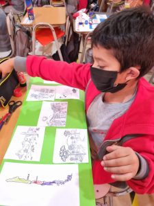 Utilizaron materiales como cartulina, imágenes impresas y plumones. El motivo de esta actividad fue para el cierre de la unidad, y la tía nos contó que “fue algo entretenido, ya que a los alumnos les gustan más los trabajos prácticos”.