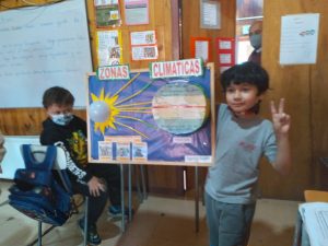 Recientemente los alumnos de 3° básico de la Escuela Nido de Cisnes realizaron disertaciones en el marco de la unidad “Desarrollo del pensamiento espacial y estudio de las zonas climáticas”. Los niños elaboraron sus presentaciones en cartulina, maquetas y power point. El propósito de este trabajo fue investigar las zonas climáticas del planeta y poder expresarse en frente de sus compañeros.