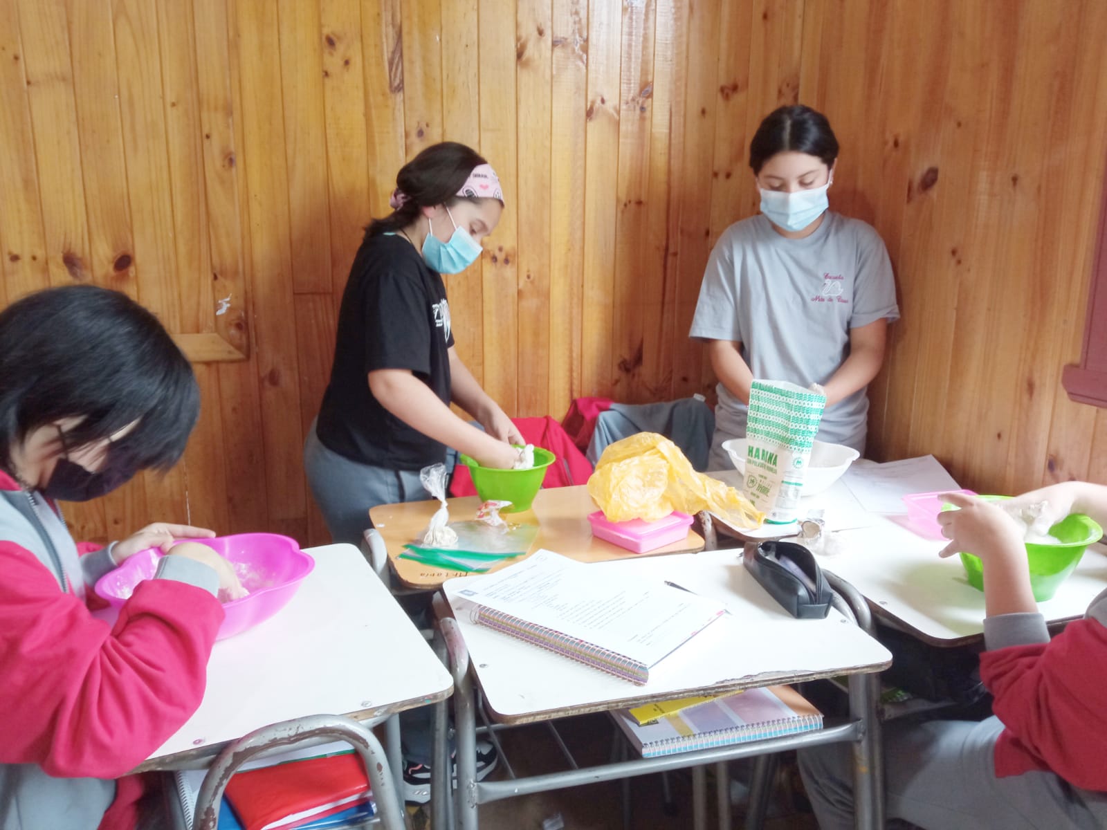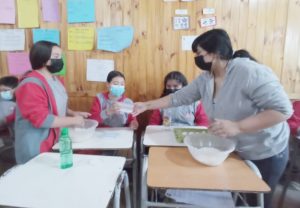 La profesora Josselyn Guerrero y sus alumnos de 7° básico fabricaron en la unidad “Organismos y Ambiente”, de la asignatura de Ciencias, una masa de pan hecha con levadura, harina, agua, huevos y sal. Este trabajo lo hicieron con el objetivo de comprobar la acción de los microorganismos en la elaboración de alimentos y ver a los alumnos trabajar y vivenciar los contenidos de forma concreta, también tuvo beneficios como experimentar de forma real los contenidos e interactuar con los compañeros.