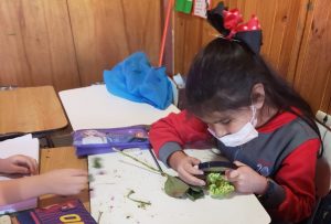 En nuestra entrevista con la profesora Gladys Norambuena nos contó sobre la actividad de la asignatura de Ciencias Naturales, en la unidad de “Seres vivos en nuestras vidas” en 3° básico. Para esta actividad los alumnos investigaron lo que contienen los pétalos de las flores y plantas con una lupa.