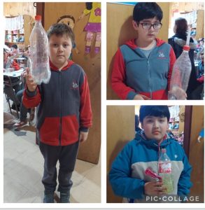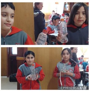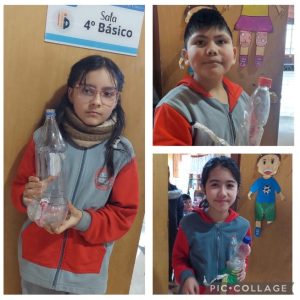 El 4°básico de nuestro colegio realizó un proyecto en la asignatura de Tecnología con la profesora Gladys Norambuena. Se trató de crear un aparato tecnológico con materiales reciclados como botellas plásticas, tapitas, papel aluminio, entre otros, fabricando regaderas plásticas y dispensadores de agua para lavarse las manos.