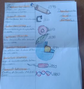 En nuestro colegio los alumnos de octavo año básico realizaron una actividad con la profesora Josselyn Guerrero en Ciencias Naturales, en la unidad “Organismo, ambiente y célula”, en la que iniciaron una línea de tiempo sobre la teoría de las células.