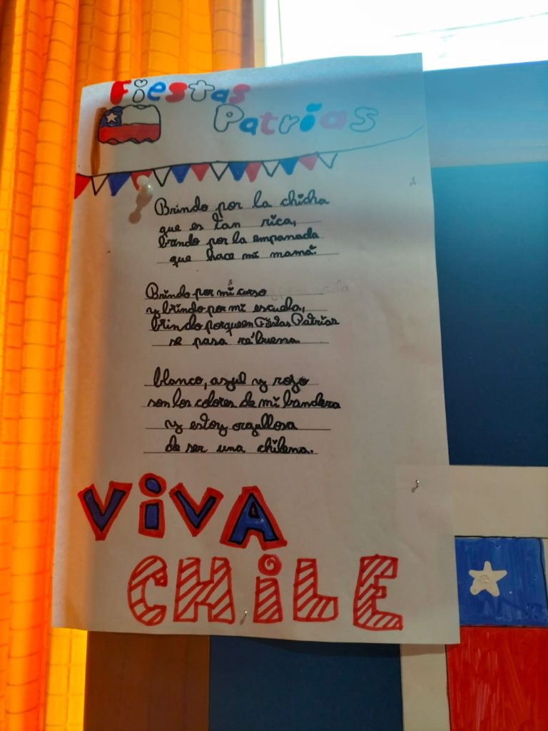 En nuestro colegio, el curso cuarto básico junto a la profesora Macarena Segovia, realizó un hermoso trabajo en la asignatura de Artes Visuales. Se trató de elaborar un mural colaborativo sobre la tradiciones de Fiestas Patrias, en el que los niños y niñas debieron dibujar distintas elementos alusivos a las celebraciones del 18 de septiembre en un rompe cabezas