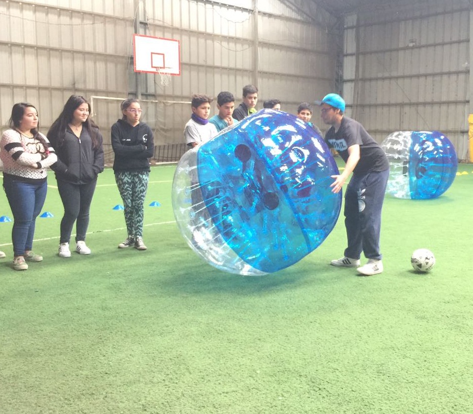 Una entretenida actividad pudimos disfrutar el día viernes 19 de mayo con la visita a nuestra escuela del encargado del proyecto Fútbol Burbuja. Leonel Álvarez, quien implementa este tipo de actividades en diversos colegios, ofreció a nuestro director, tío Claudio Muñoz, la posibilidad de desarrollar una clase con los alumnos de 8° básico para enseñar esta técnica. Un partido en que lo pasamos muy bien y nos divertimos mucho, haciendo actividad física.