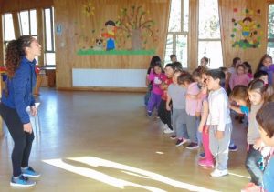 En el mes de marzo llegó hasta nuestra escuela la tía Paulina Olivares, quien está haciendo su práctica de Pedagogía en Educación Física, y estará con nosotros durante todo el primer semestre. La tía Paulina, es de la ciudad de Arica y se vino a Chiloé, porque conocía de antes la zona y le gustaba mucho. Ella estudió en la Universidad de Tarapacá y escogió esta carrera porque siempre le gustó el ejercicio y la actividad física.