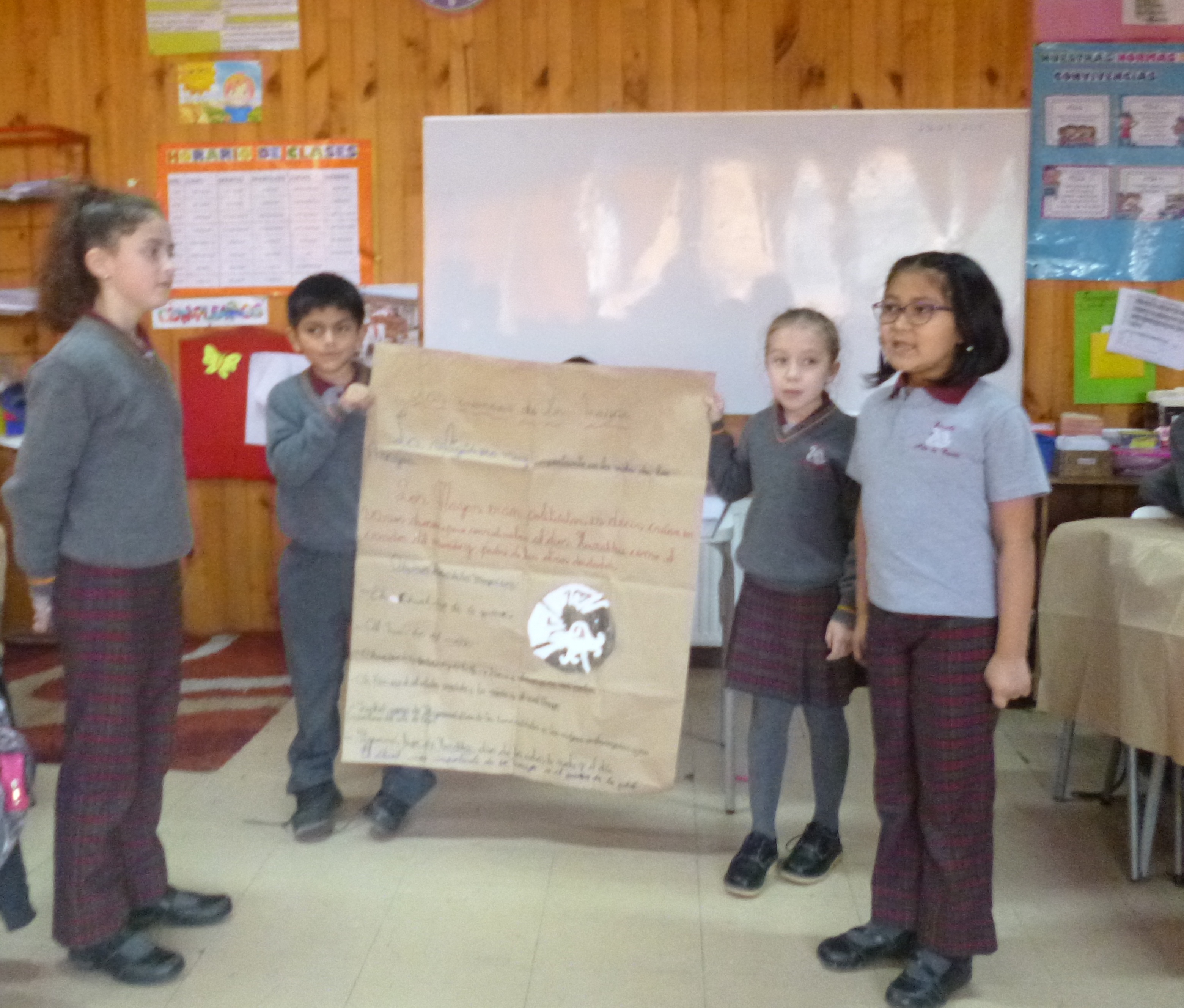 Para este proyecto utilizaron materiales como recortes de libros y revistas, papel y plumones de colores.