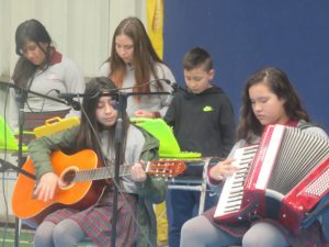 Finalmente el cuarto básico del establecimiento, deleitó a los presentes con el vals “Ese chilote marino”, cuya representación compone uno de los temas centrales del repertorio musical de Chiloé.