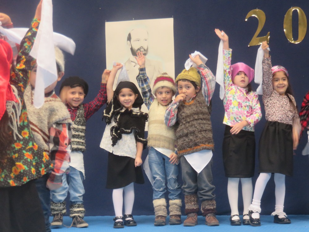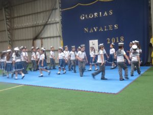 El himno de la Armada de Chile fue representado por los niños del 2° básico, y los pequeñitos de Kinder declamaron una poesía titulada “21 de mayo” y un baile “Repicao”.