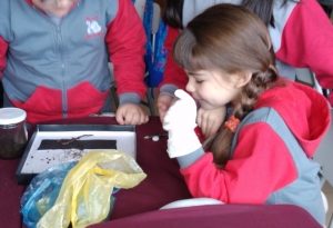 En el marco de la unidad “El mundo de los seres vivos” en la asignatura de Ciencias Naturales, los niños del 2° básico pudieron trabajar en su sala de clases con lombrices vivas y de este modo pudieron conocer las características de su hábitat. La metodología de esta actividad fue alumbrar con una linterna a las lombrices y ver cómo reaccionaban ellas frente a la luz, si preferían la claridad o la oscuridad.