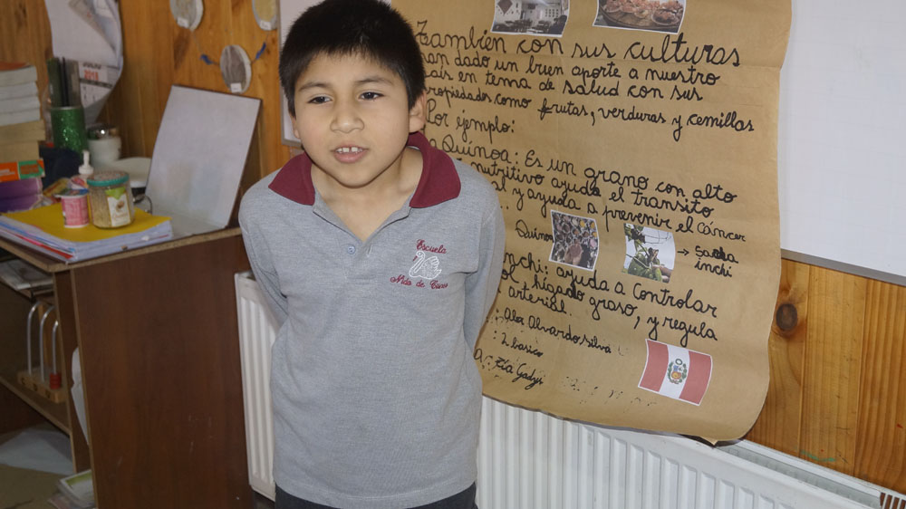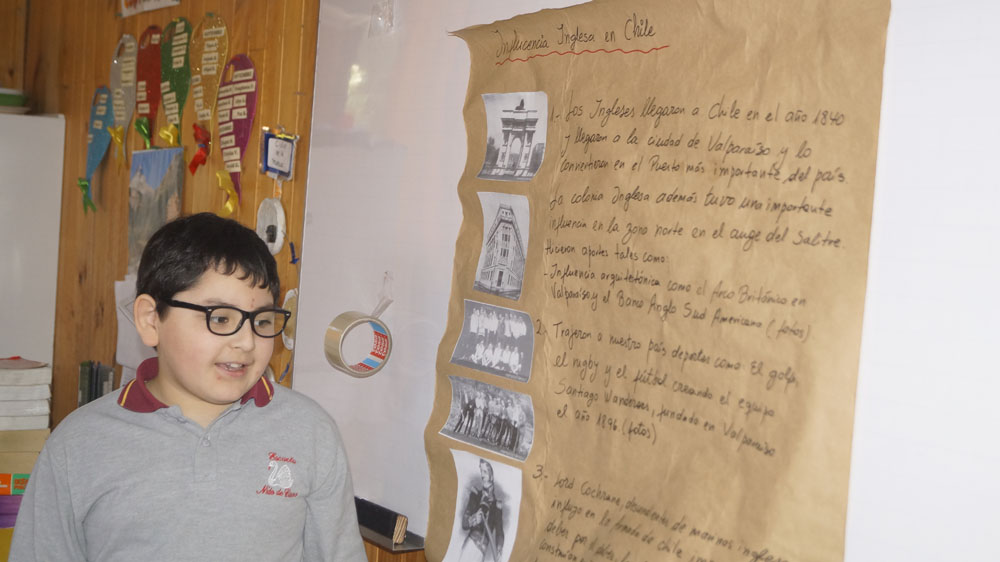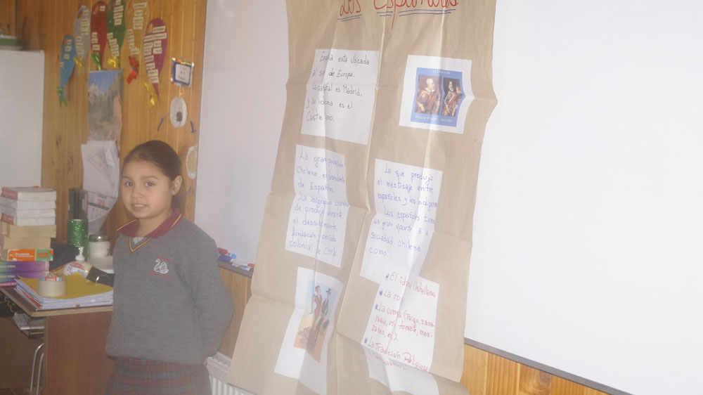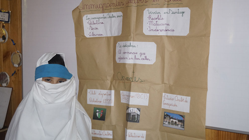 La profesora Gladys Norambuena del 2° básico de nuestra escuela realizó una actividad sobre los inmigrantes, en la asignatura de Historia. En ella, los niños debieron investigar los aportes y el legado de los diferentes inmigrantes en la sociedad chilena, tanto del pasado como en el presente, además de sus lugares de procedencia. Para complementar sus presentaciones, los alumnos se caracterizaron a través de vestimentas o implementos que son propios de sus culturas.