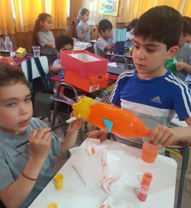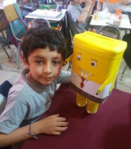 El 2° básico de nuestra escuela realizó un trabajo que consistía en crear un personaje animado, elaborado con materiales reciclados como cartón, botellas, cajas de zapatos, tapas, etc., en la unidad “Expresiones”, en la asignatura de Artes Visuales.